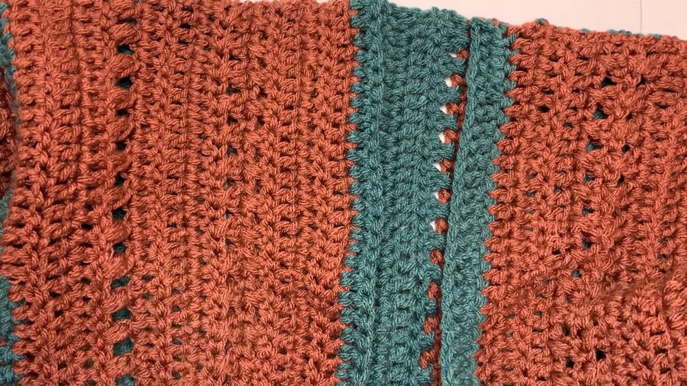 - For the sides and neckline, use Color B to crochet two rows of double crochet, ensuring smooth edges.