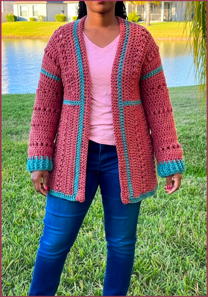 - All-in-One Body Construction: The cardigan is worked as one flat piece, minimizing the need for seams.