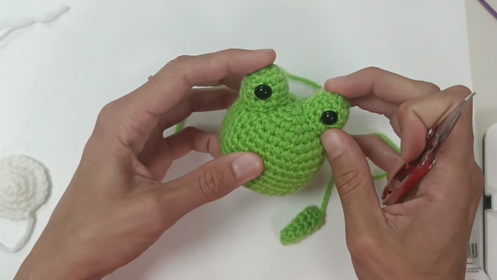 - Attach the safety eyes and finish off (leave a long tail for sewing to the body).