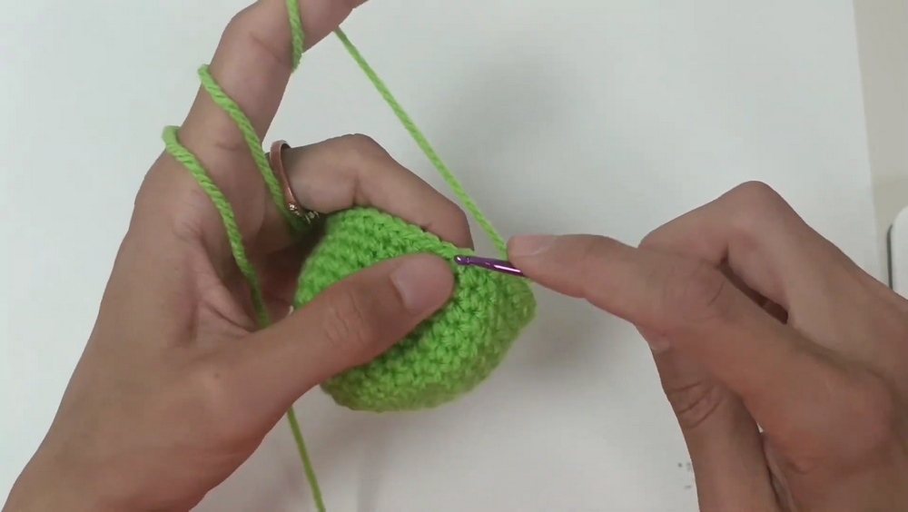 - Rows 3–5: Create three rows of 12 single crochets around.