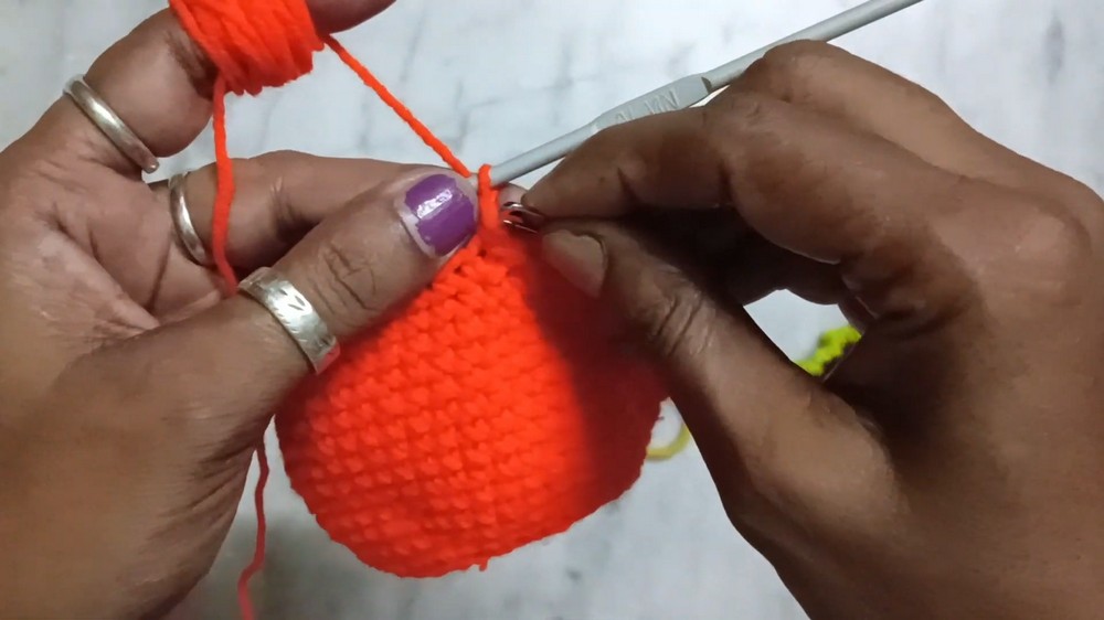 - For round 3, alternate between one sc in one space and two sc in the next space. This results in 24 sc.