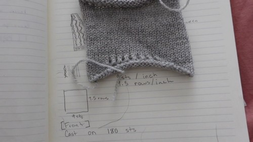 Swatching: Different swatches were made to decide on the pattern (cables vs plain knitting):