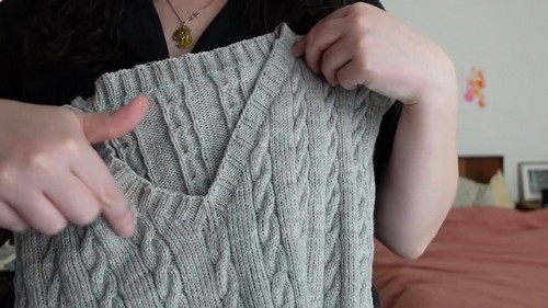 - Armholes: Stitches were picked up around the armholes to knit the ribbing.