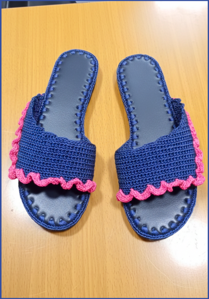 - Incorporates sustainable crafting by utilizing handmade insoles and household materials.