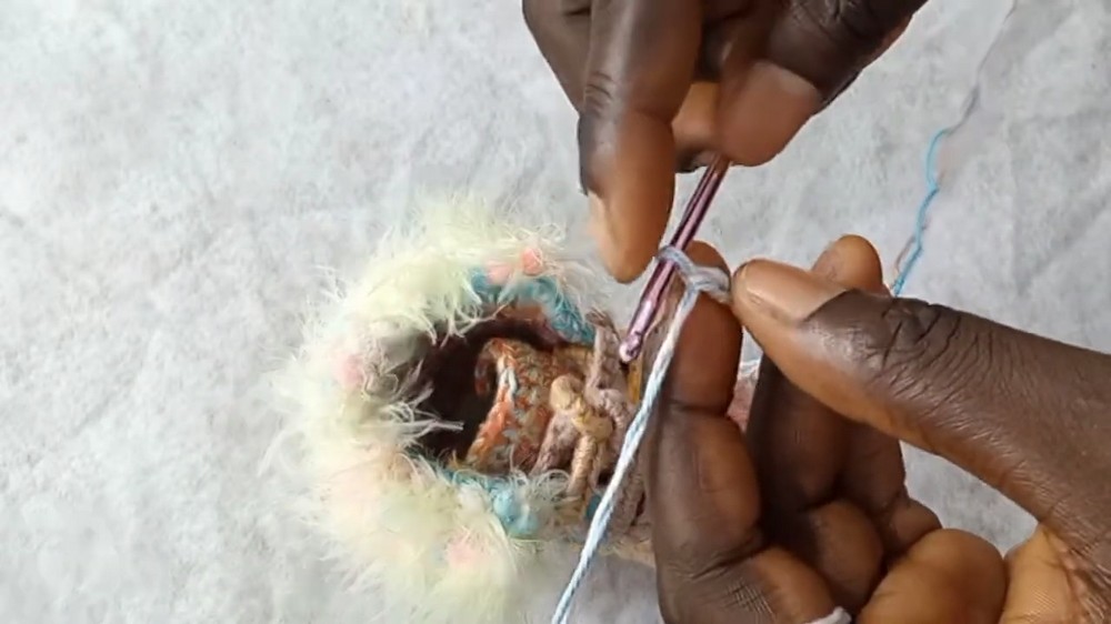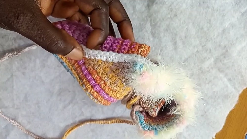2. Repeat rows of single crochet, adding long single crochets alternated with short single crochets for texture.