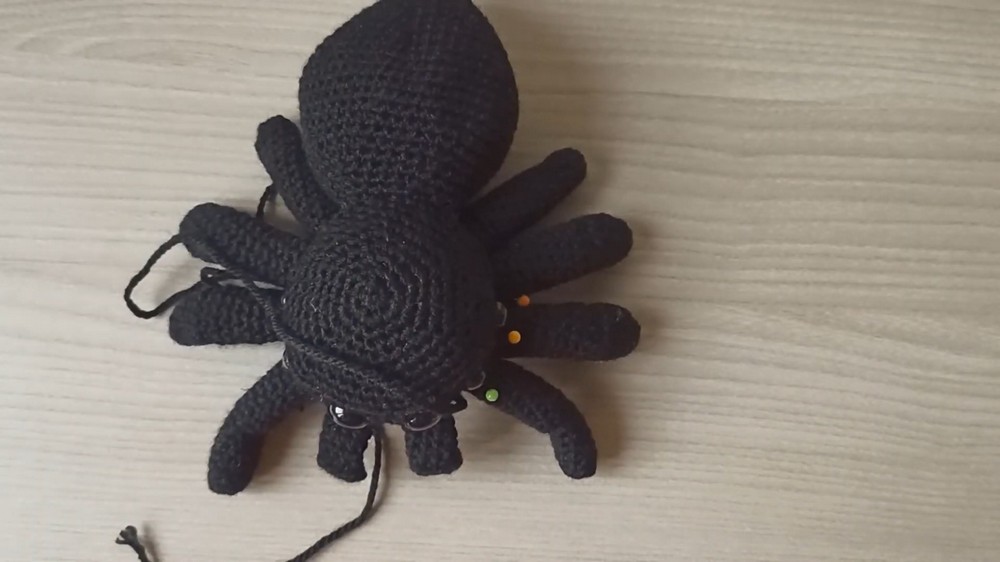 Throughout the process, alternating between front and back loops enables the legs and appendages to bend naturally, mimicking a real spider's movement.