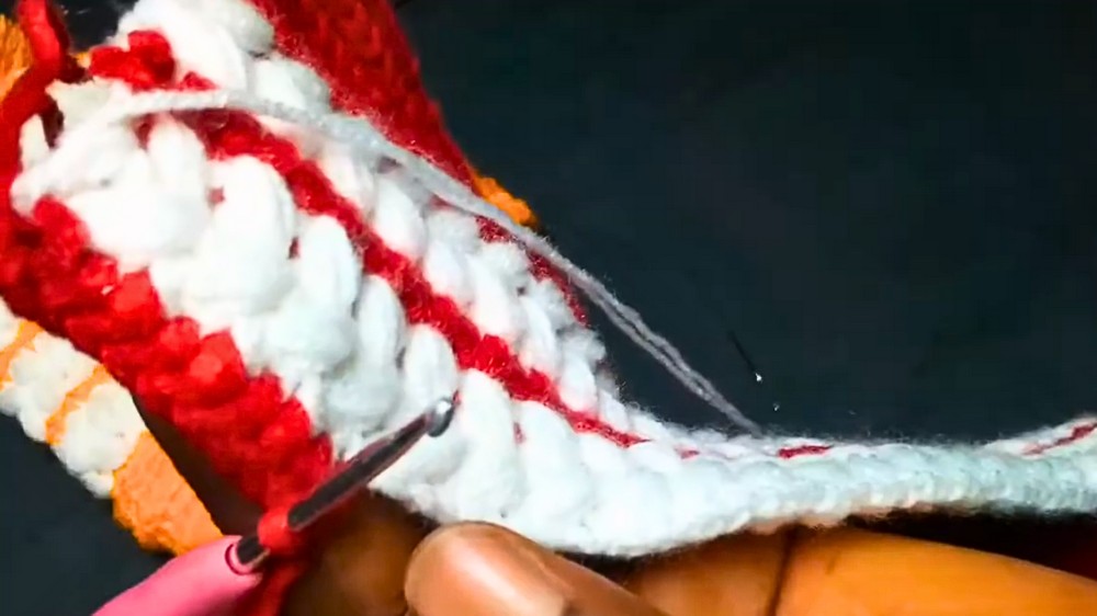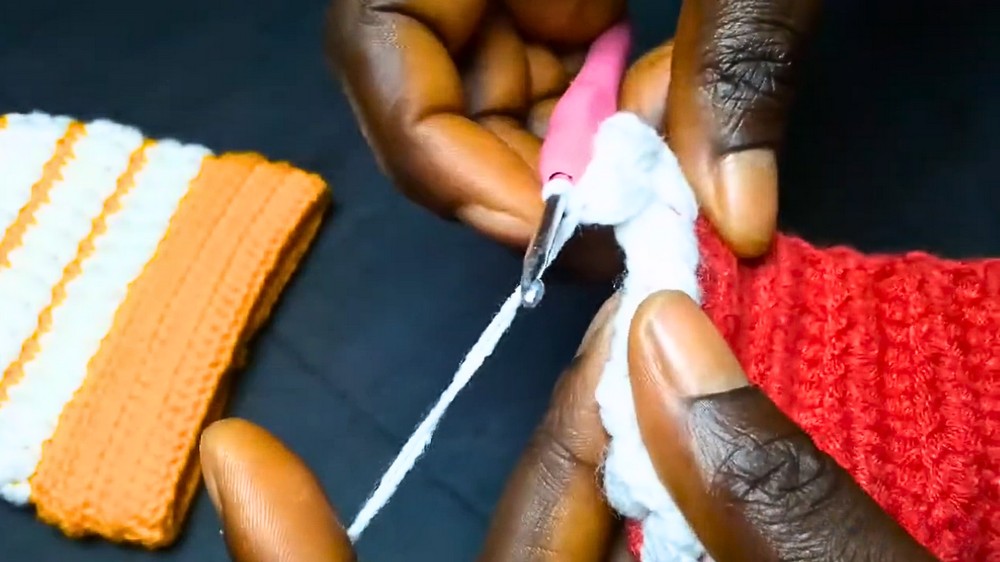- From row 2 to row 10, use half-double crochet (HDC) stitches while working in the back loops only. This creates a textured appearance with slight ridges.