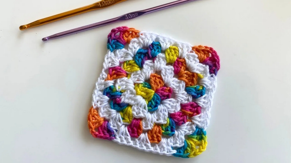 - Rainbow Yarn (multi-colored): For the main color of the granny square.