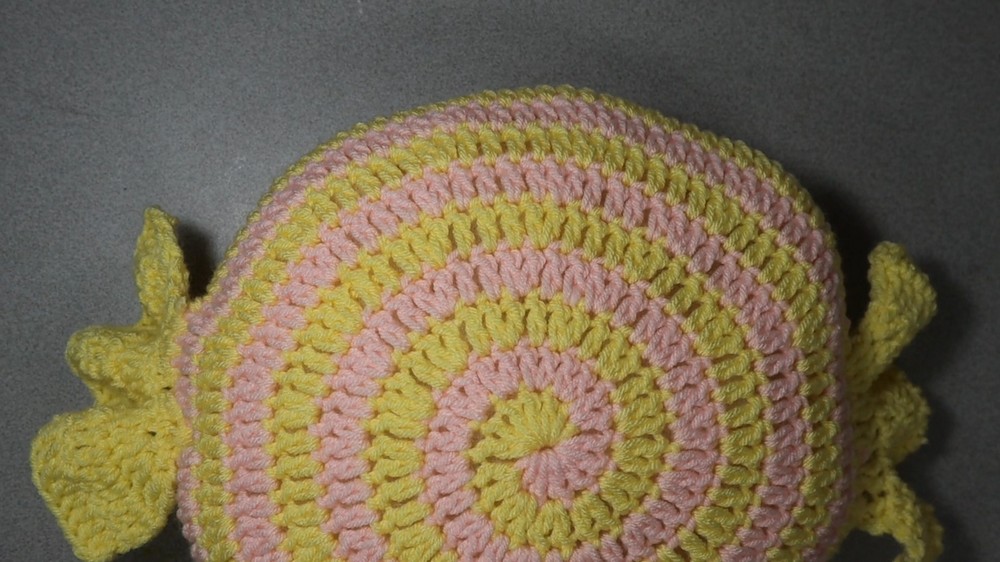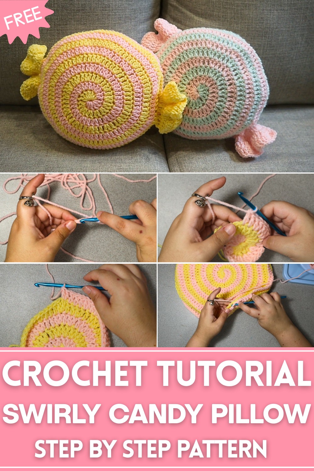 Twinkling Crochet Swirly Candy Pillow with Eye-Catching Charm