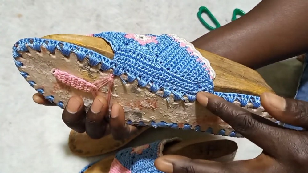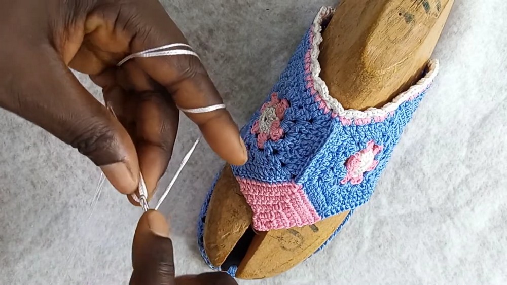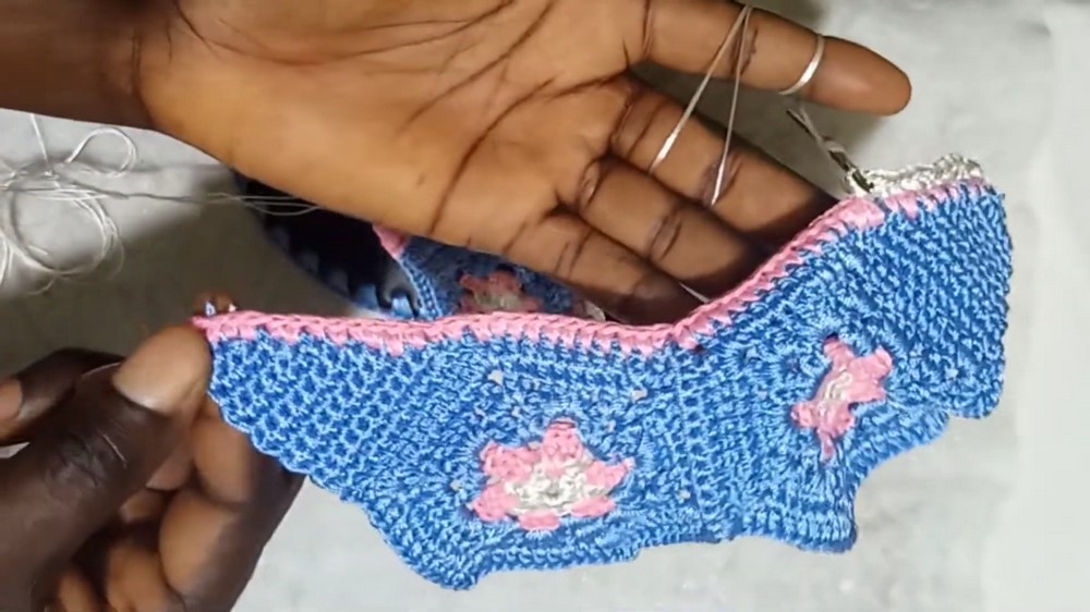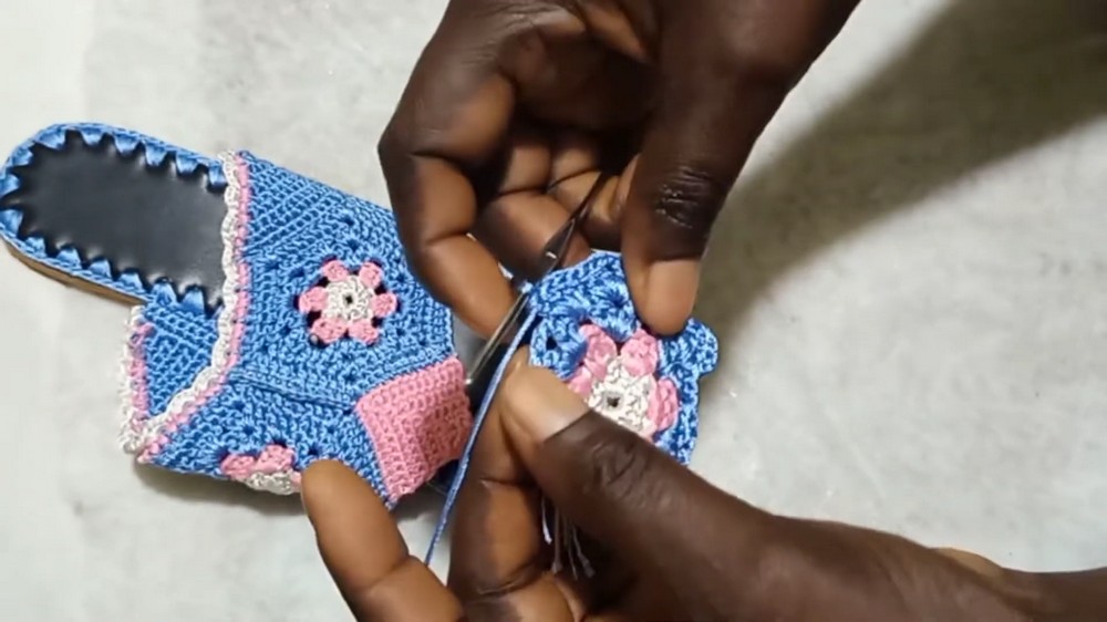 - Crochet three rows of single crochet along the slipper’s edges to create clean and sturdy sides.
