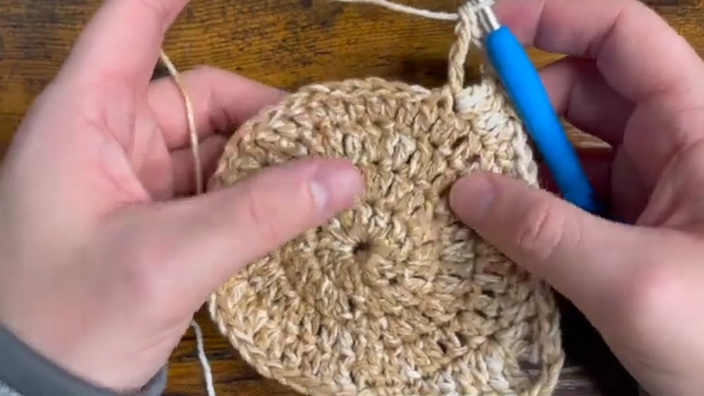 - Finish by slip stitching into the first SC and fasten off.