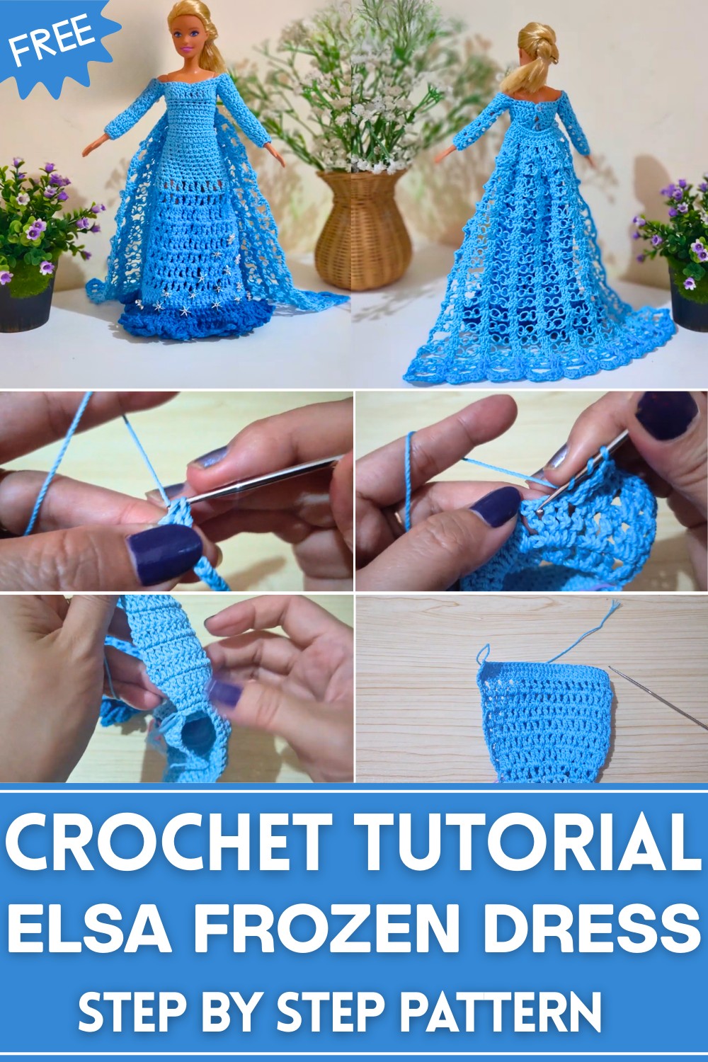 Turn Barbie into a royal ice queen with this Free Crochet Elsa Frozen Dress for Barbie Doll Pattern, a charming outfit perfect for play, display, or gifts.