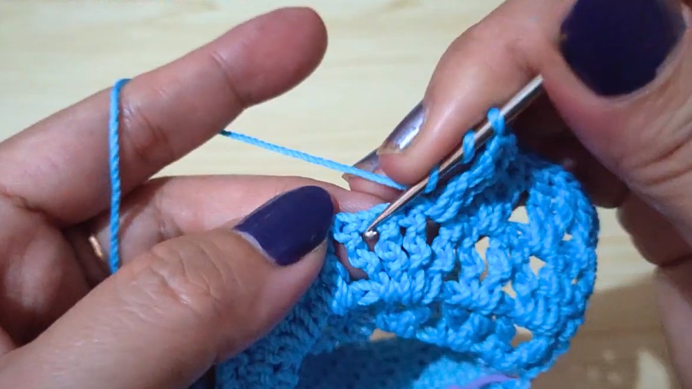 - Skip 1 stitch, and repeat the V-stitch around.