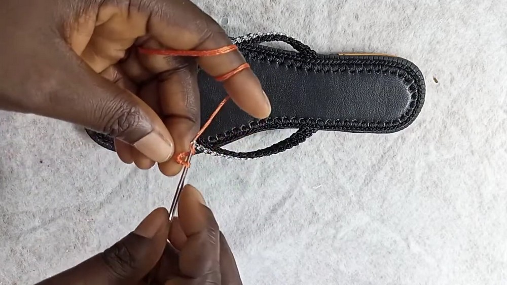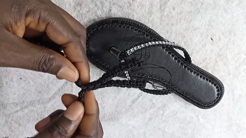 - Insert the straps into the holes of the insole and fix them securely with super glue for a firm hold.