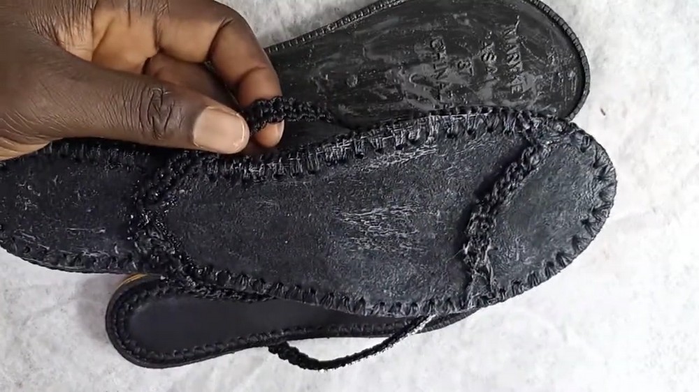- Apply a layer of strong gum (e.g., foreign gum) to the sole's edges and let it dry slightly.