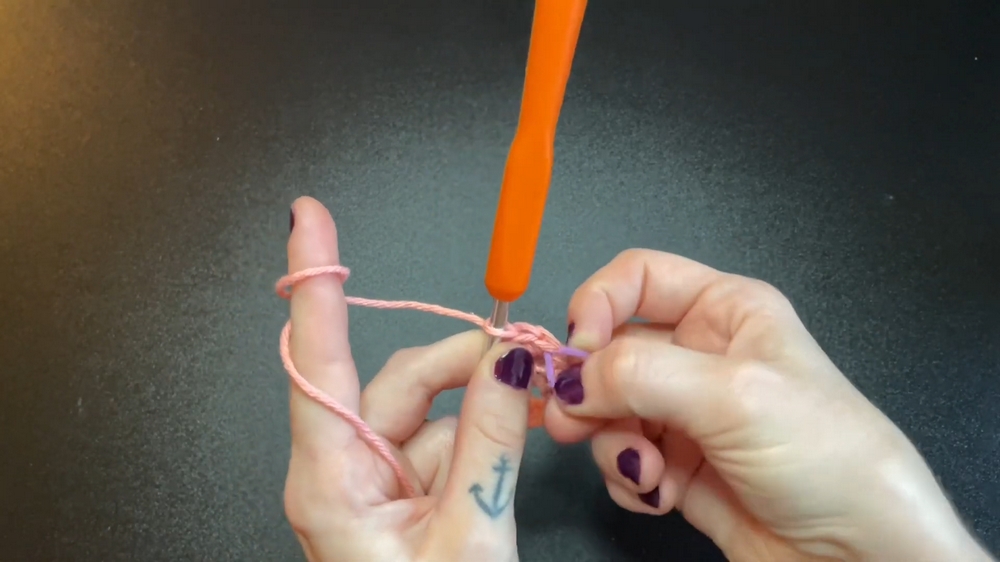 - Start with a slip knot, then chain 13 for a size small. Refer to the tutor’s chart if working on medium or large sizes, as the foundation chain will vary.