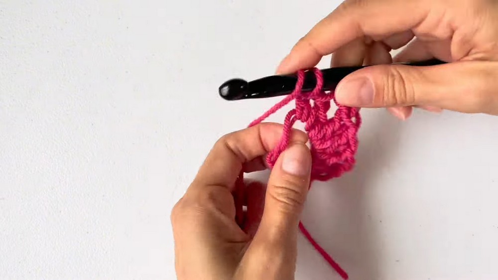 - Crochet 2 more double crochets, followed by 2 chain stitches.