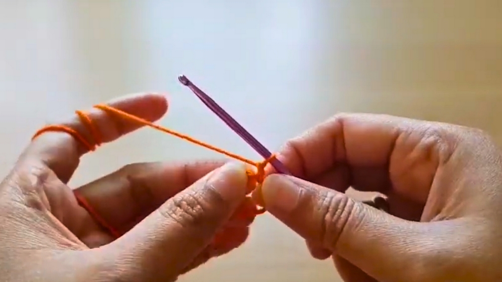 - Use a bright-colored yarn (like orange) during the learning phase to make the stitches easier to see and follow.