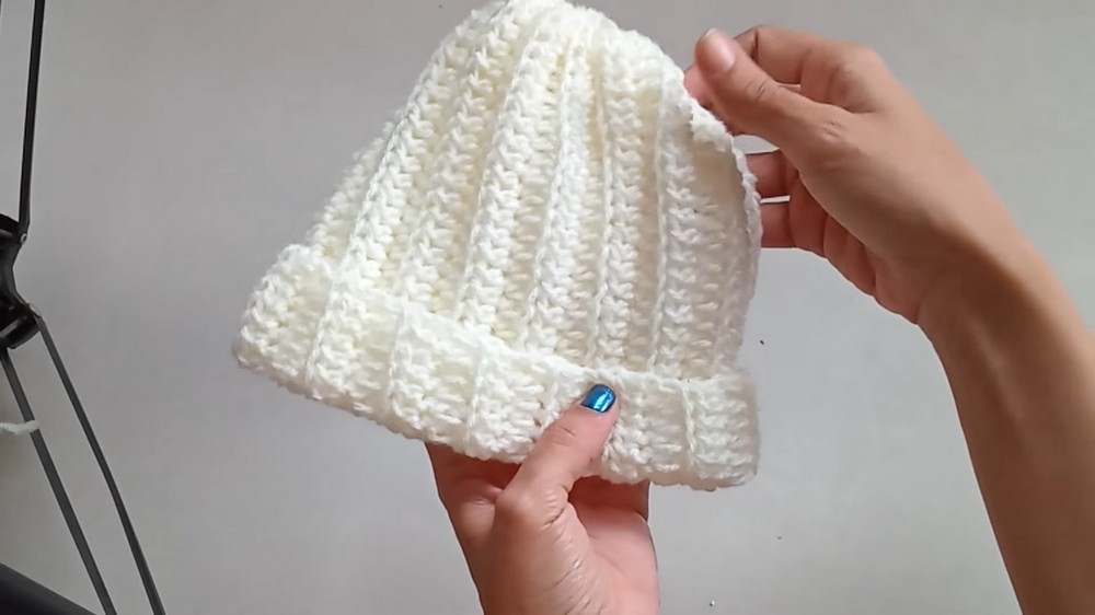 To finish, the top edge is gathered using a tapestry needle for a clean closure, and decorative elements such as pompoms or a folded brim can be added for flair.