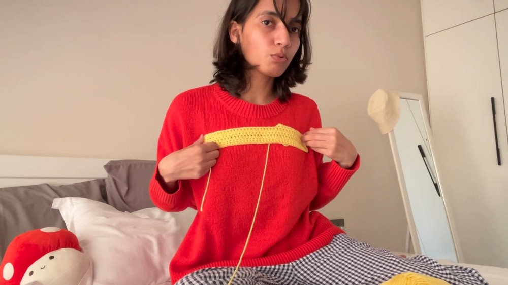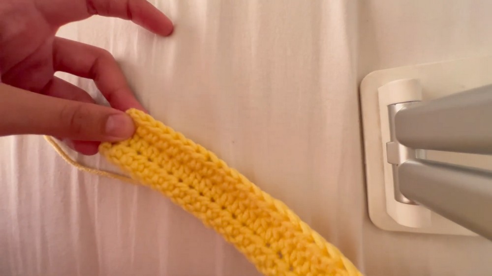 Once the main body is complete, the straps are crocheted by chaining 145 stitches for each side. Attach and secure them effectively to ensure durability.