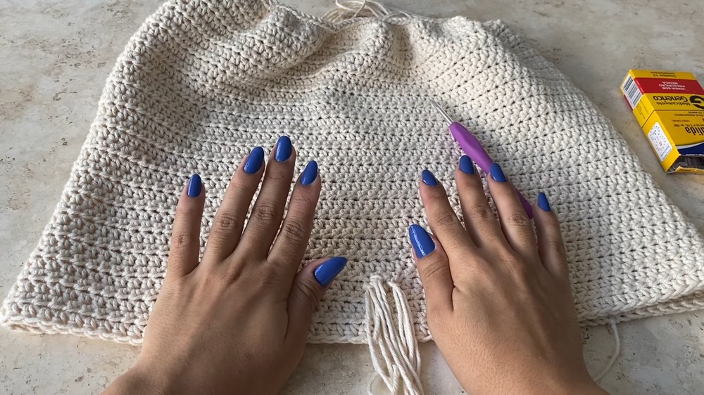 The standout feature—the fringe—is made by cutting yarn strands of equal length and attaching them evenly around the hemline. Secure the fringe carefully to avoid unraveling, and trim it for consistency.