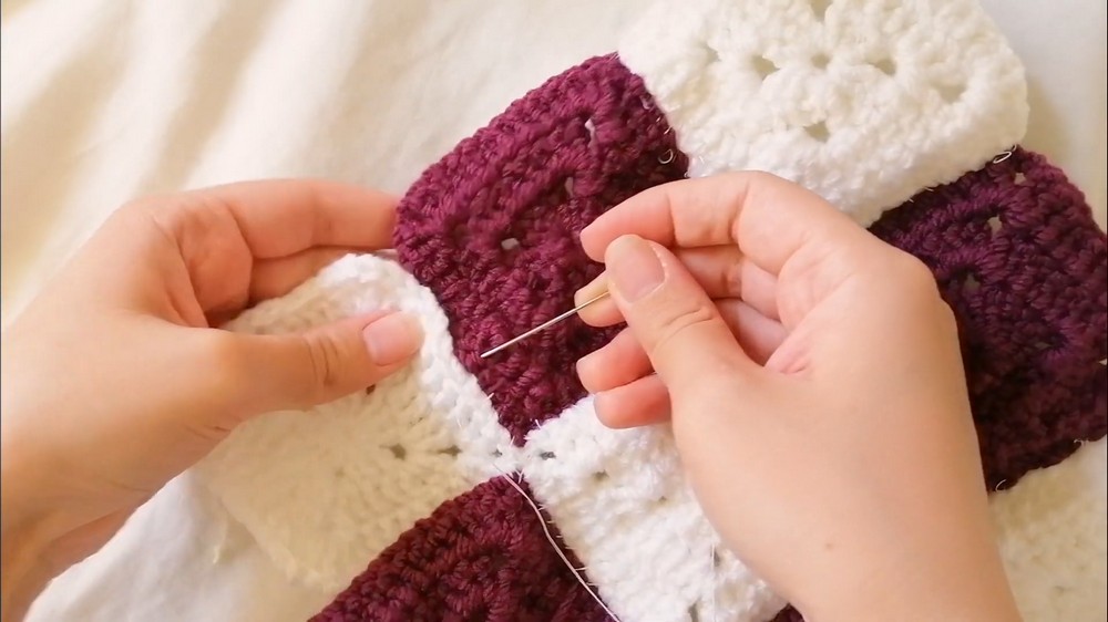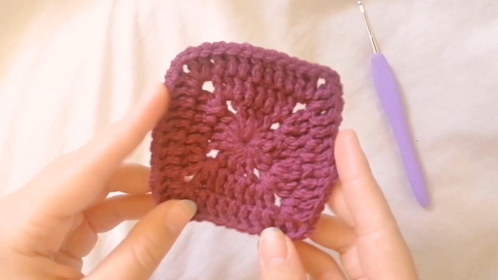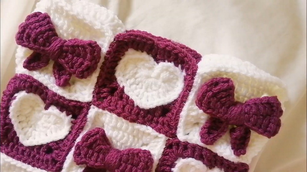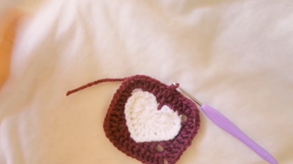Once the granny square is completed, the next step is the heart square, combining triple and double crochets to shape the unique design.