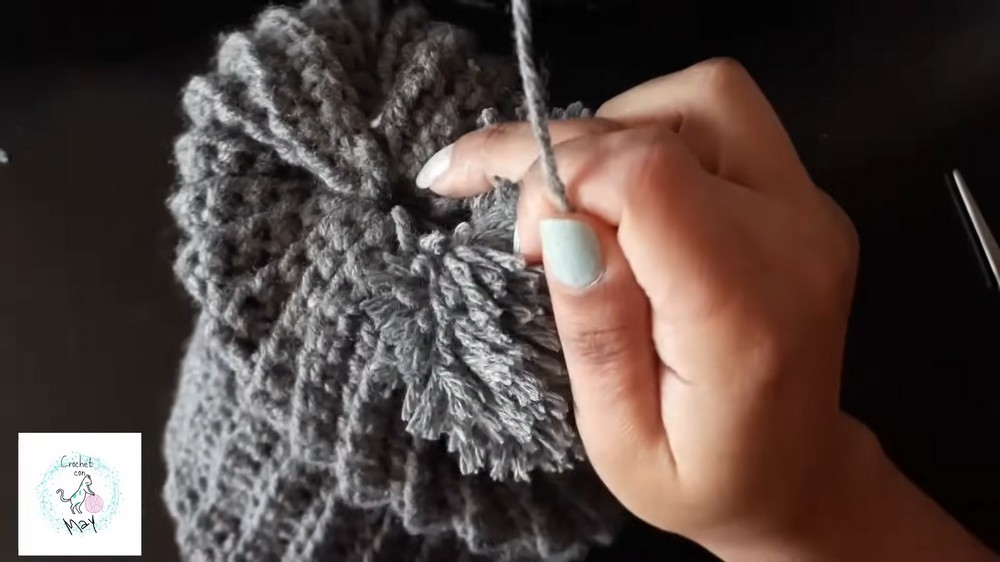 When making the pompom, leave extra yarn tails that can be used for securely tying it to the hat. This prevents sagging or losing the pompom over time.