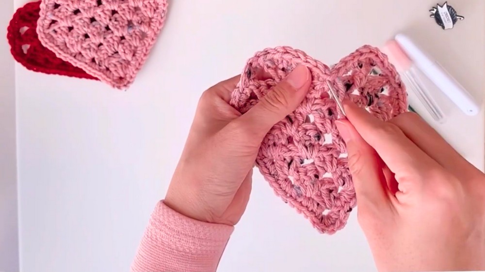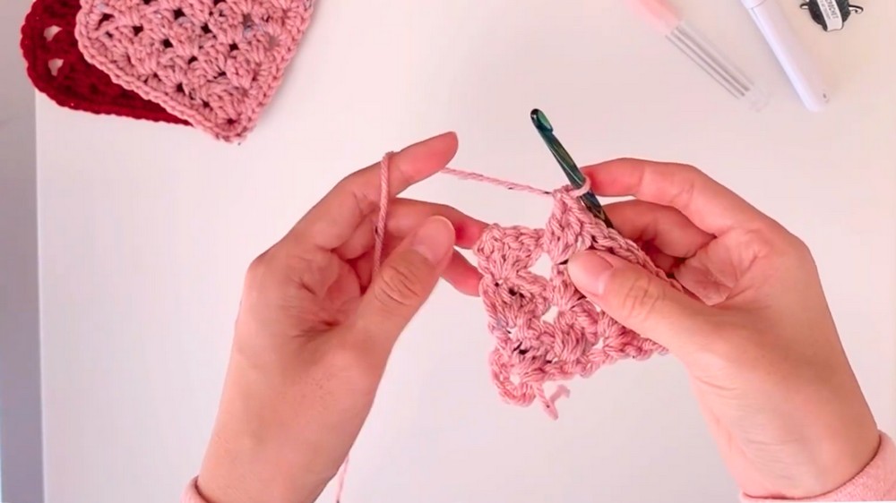 When flipping your work between rows, always check for enough stitch space so that the heart shapes symmetrically. This will prevent uneven edges and give your coaster a polished look.