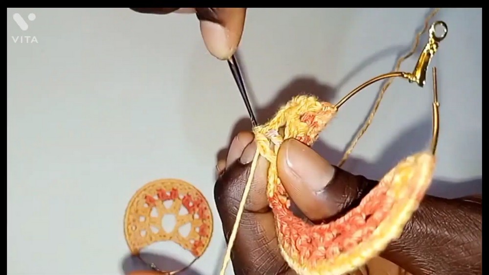 - Double Crochet in Chain Spaces: Yarn over, insert the hook into the previous chain space, and make two double crochets followed by one chain. Skip the next chain space and repeat the pattern around the hoop.