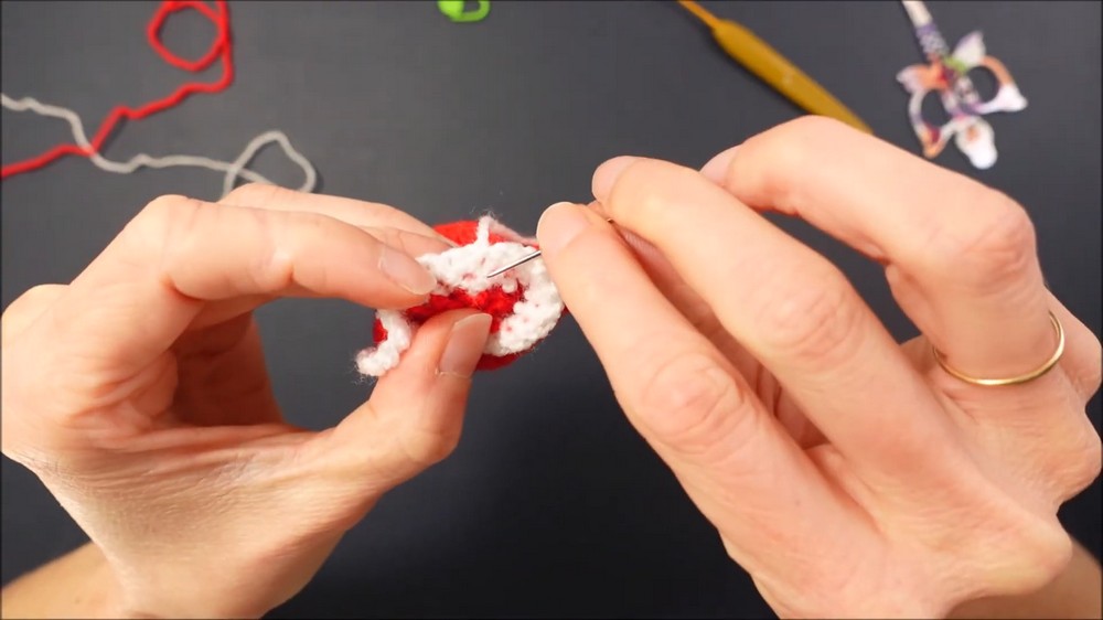 - Switch to the white yarn for row 19. Work normally on the 18 stitches.