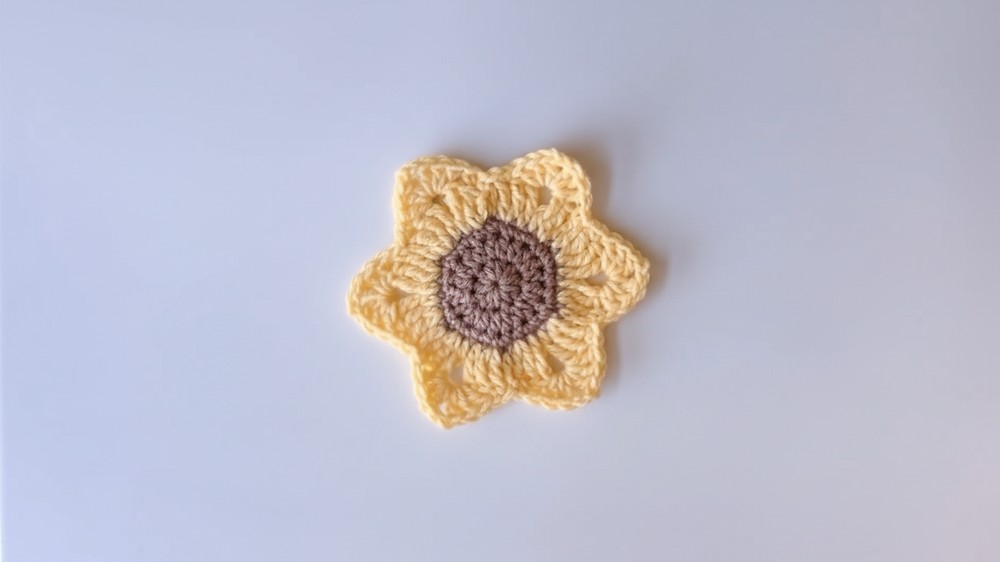 - At the last petal, finish with a clean slip stitch. Trim the yarn, leaving a small tail, and weave in all loose ends with a yarn needle for a tidy finish.
