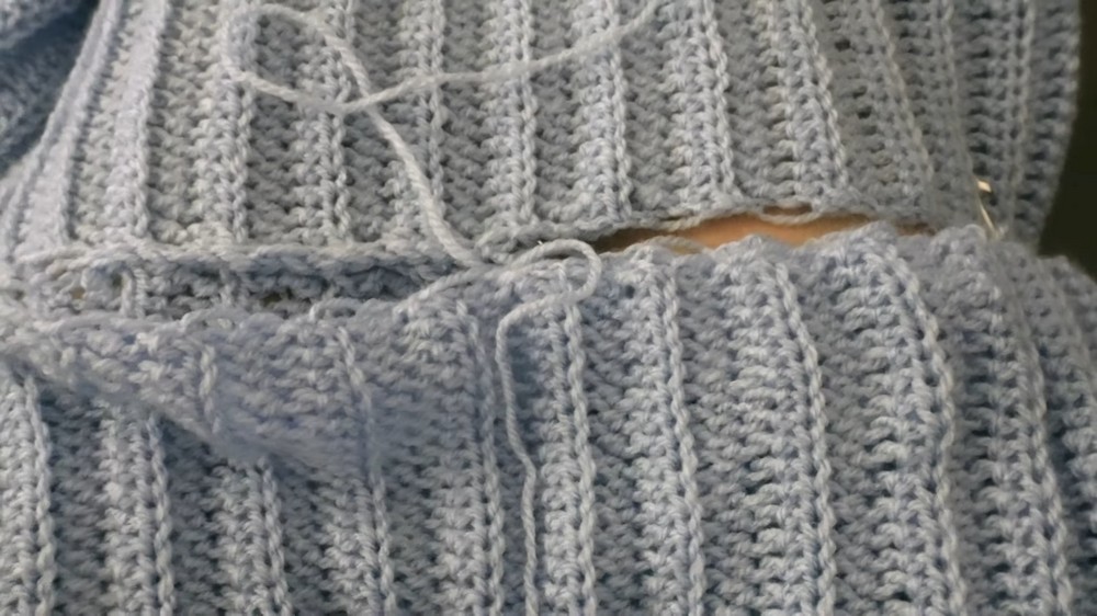 - Yarn: The creator uses baby yarn in a pretty blue shade to keep the sweater soft and lightweight.