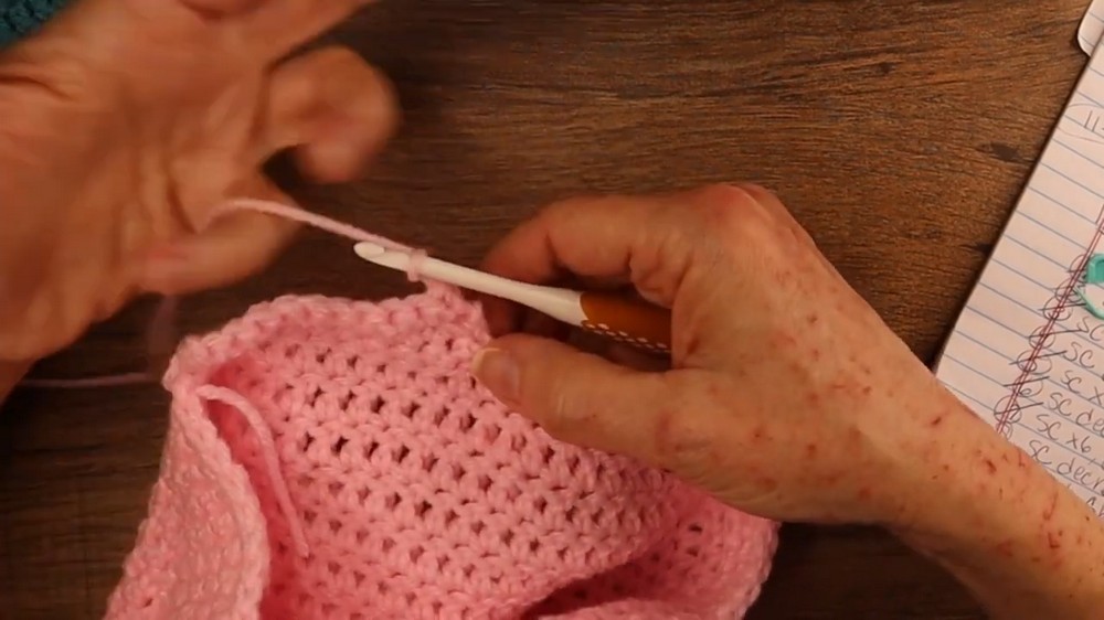 For Rounds 11 through 16, stop increasing and crochet one double crochet into each stitch. This creates the body of the hat, resulting in a smooth and consistent shape. Use a stitch marker to keep track of rounds if necessary.