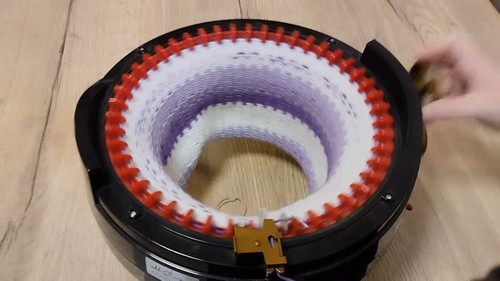 - Once the scarf has reached its required length, switch back to the waste yarn.