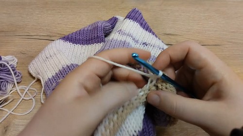 - Using a crochet hook, enter the 24th stitch and then the stitch directly in front of it.