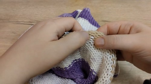- If the waste yarn is needed for future projects, carefully pull it out. If not, cut it off, but be cautious not to cut into your scarf.