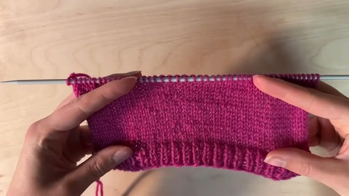 - Like the bottom, work 6 rows of ribbing (knit 1, purl 1).