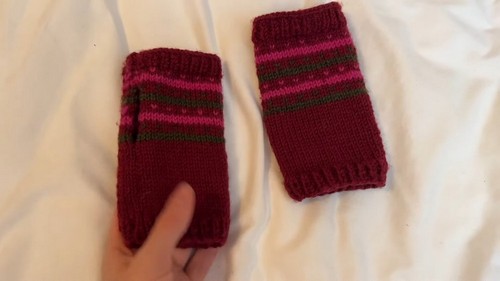 Repeat the section mentioned above (step 4) three more times with another color in between sections. This can be adjusted based on desired glove length.