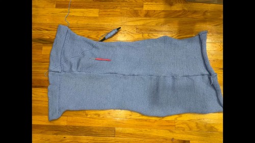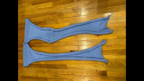 - Once the brim is completed, you can remove the scrap yarn and continue knitting the panel of your skirt.