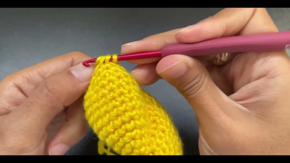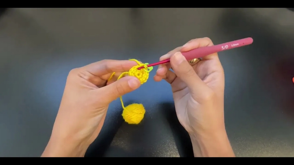 - Use yellow yarn and a 3 mm hook.