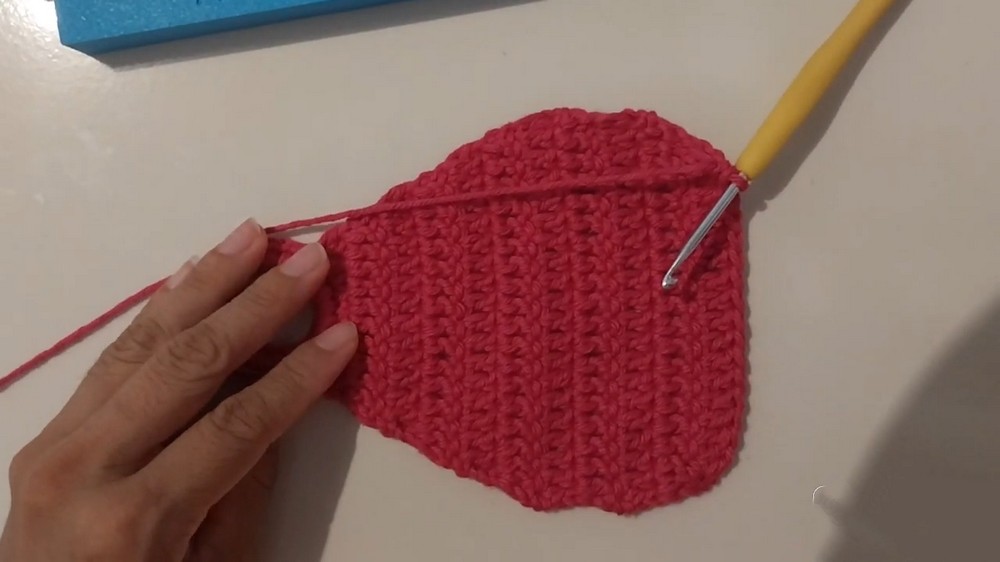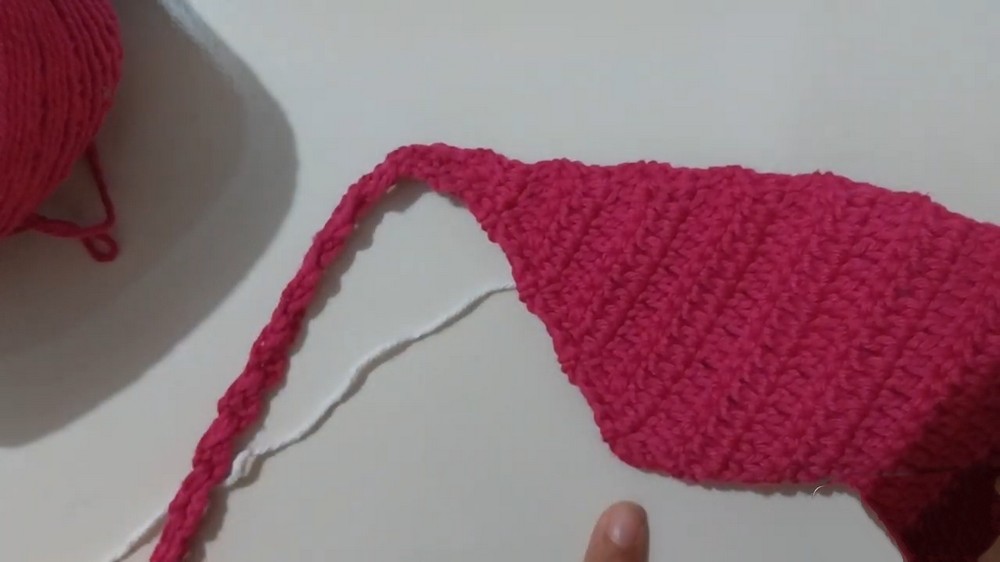 Use even stitches and ensure consistency for a clean base. Next, shape two bust cups by gradually increasing the number of stitches in each row to form triangles.