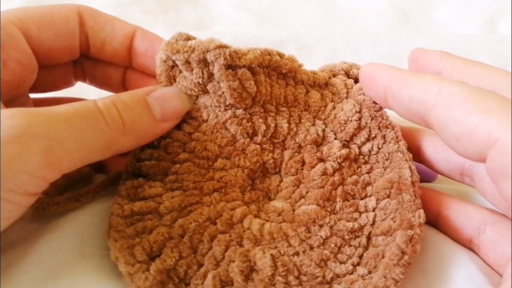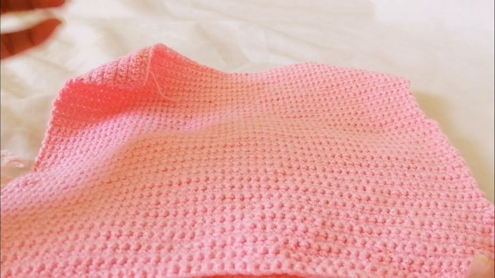 With each row, a consistent change and turn are needed to develop the square front piece. Beginners should opt for smooth yarn to avoid difficulties in seeing the stitches.