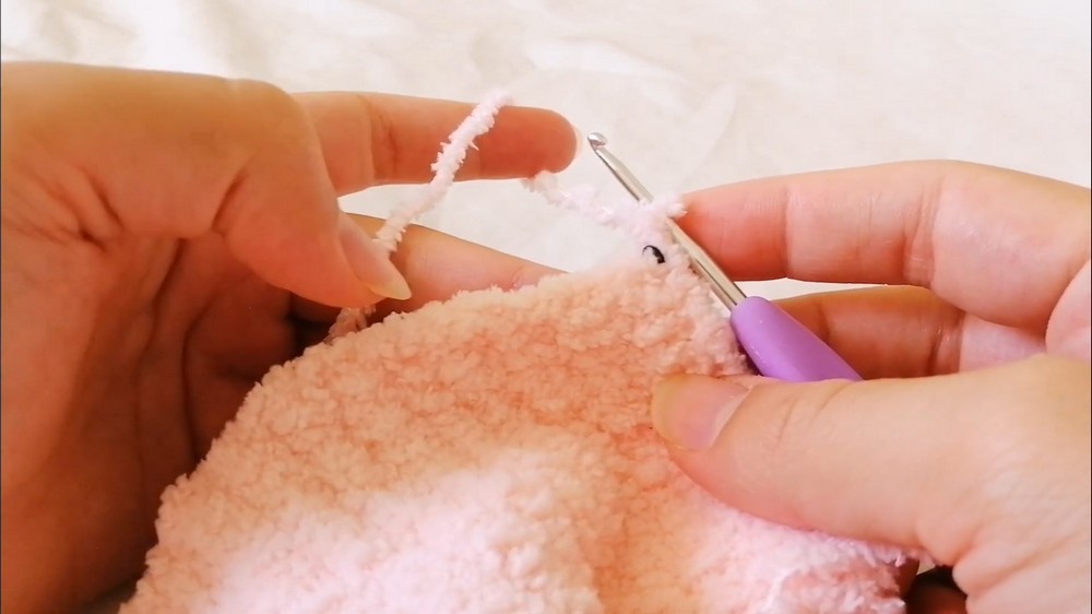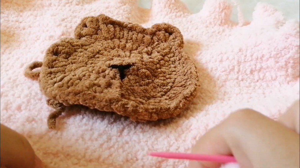 Forming a bear's face involves a magic ring and rounds of double crochets, moving onto ears with a mix of single, half, double, and triple crochets.