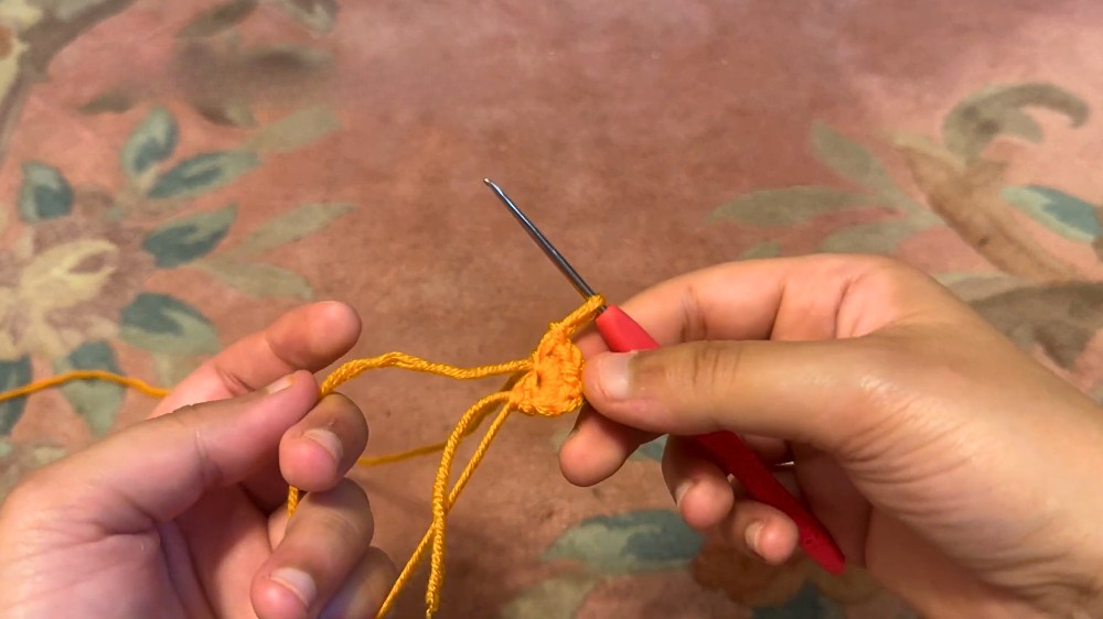 This crochet technique begins with crocheting a “magic circle,” a foundational skill that ensures a seamless starting point for the fish’s rounded body. Using soft orange yarn, the tutorial walks you through wrapping the yarn around your fingers to form the ring, followed by creating six neat single crochet stitches to solidify the base.