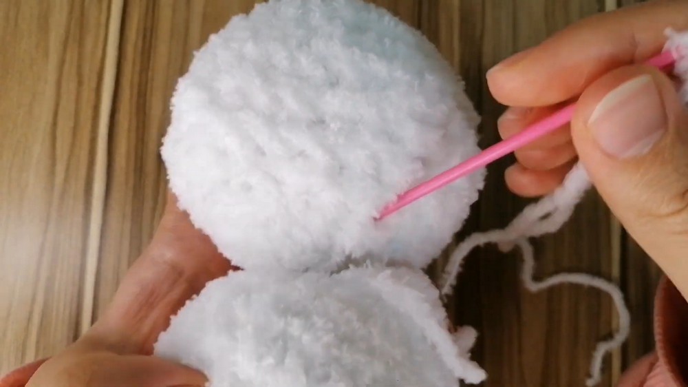 Once joined, the pattern continues with rows of single crochet stitches to shape the torso.