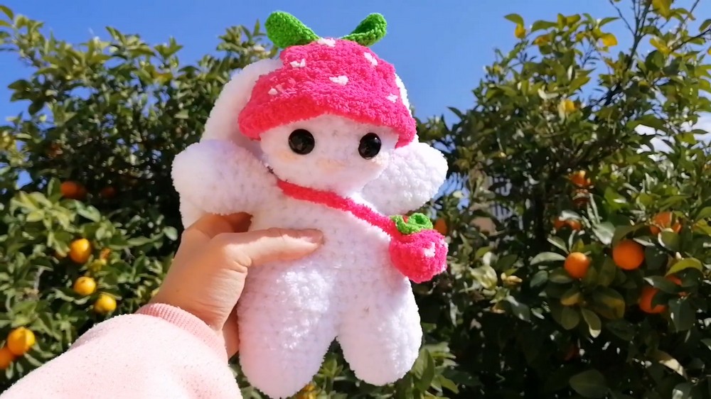 This adorable crochet bunny project is a delightful option for intermediate crocheters looking to try something fun and challenging. With its intricate details, such as a removable hat, a small bag, and a cute strawberry design, this step-by-step pattern adds charm and personalization to your handmade bunny.