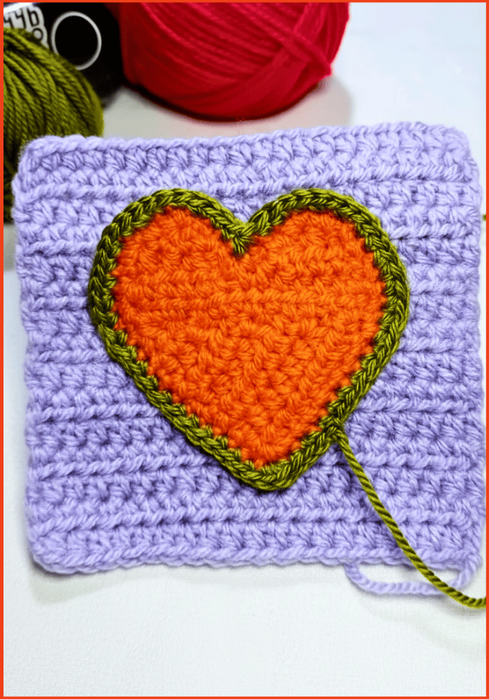 In this tutorial, the creator demonstrates how to make a uniquely designed crochet heart applique with a green border on a lilac square. The heart pattern is custom-created for this project, as the creator couldn’t find an existing design they liked. The tutorial is beginner-friendly, offering clear instructions while showcasing a personalized and vibrant crochet piece.
