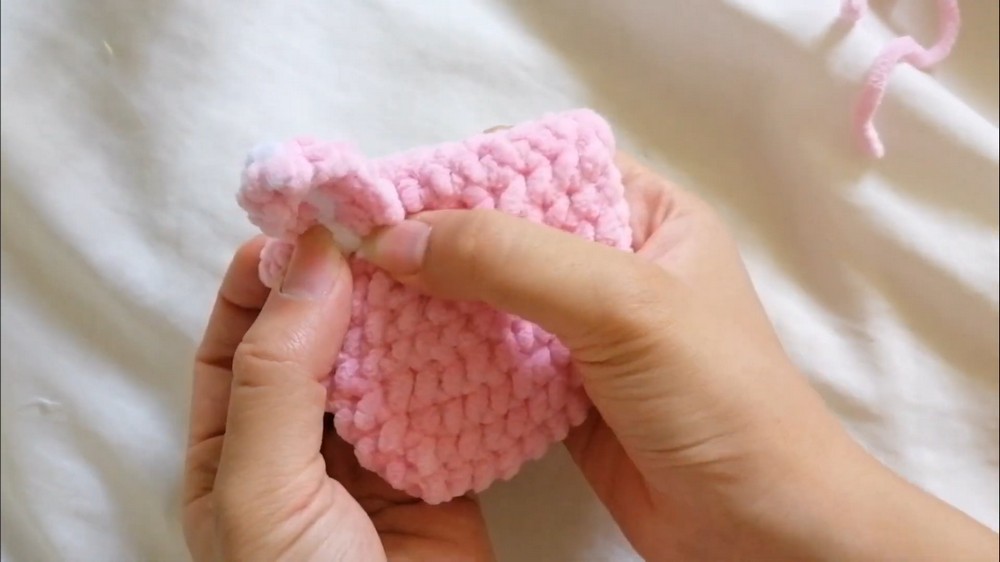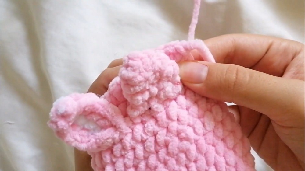 - For the second ear, repeat the process but use only pink yarn. Sew the ears to the top using a needle and give them a slight bend for a dimensional look.