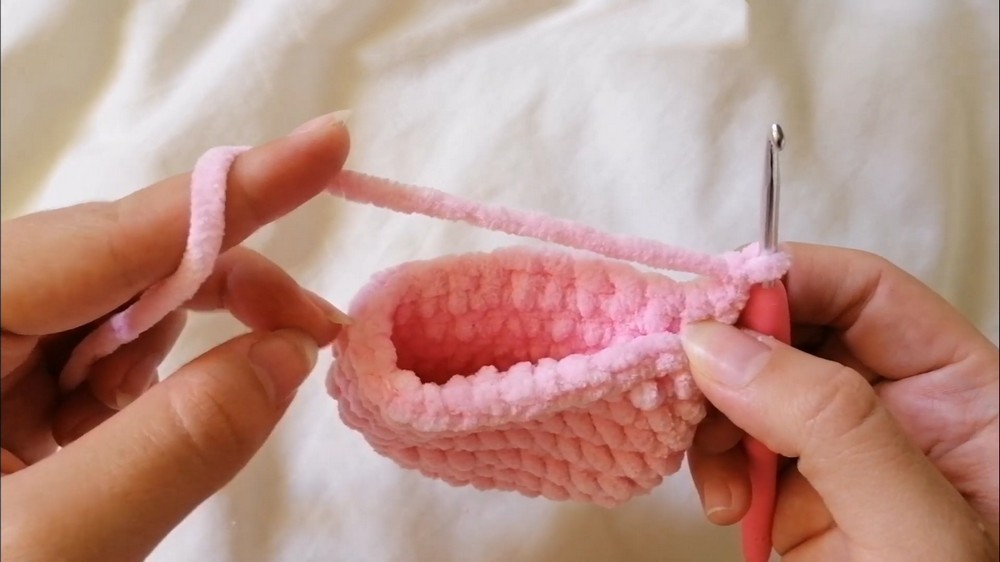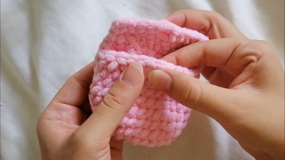 - Chain 1 and start working single crochets around the base. Use a stitch marker to remember where you started.