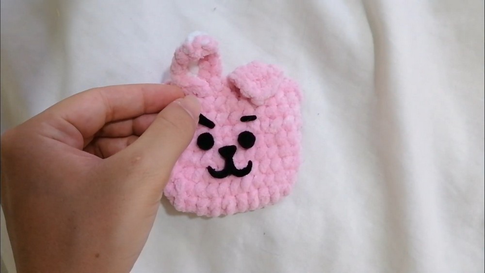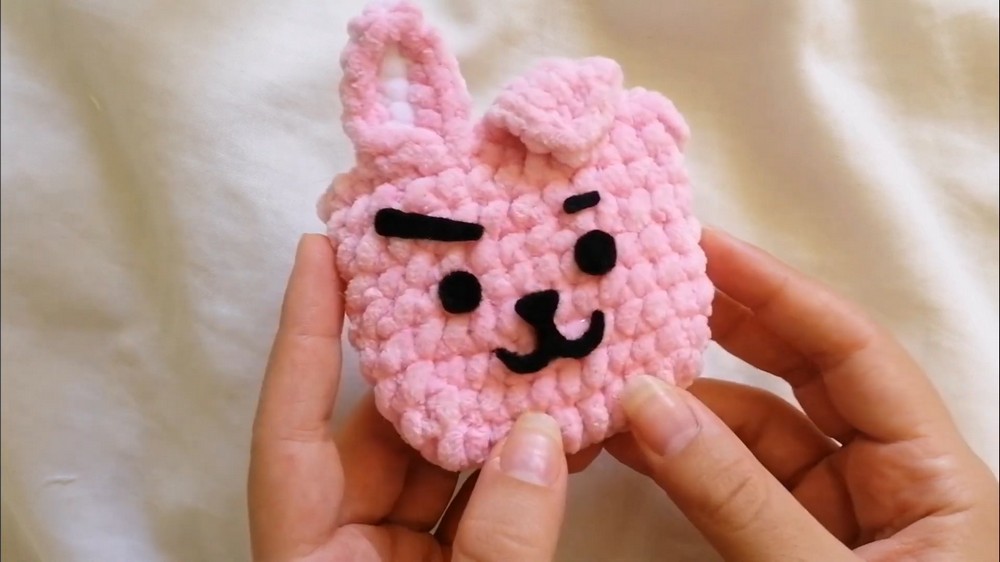 The playful Cooky-inspired design, complete with expressive facial features and cute ears, makes it an excellent gift for children or fans of whimsical styles. With the freedom to choose your favorite colors, the pattern becomes a creative canvas for personalization. Plus, the sturdy texture of crochet not only adds durability but also makes it soft to the touch.